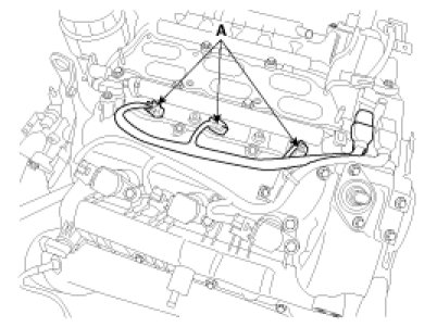 (1) Connect the RH exhaust camshaft CMP sensor connector (A).