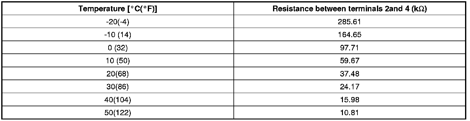 Blow air with changing temperature to the in car sensor air inlet. Measure sensor resistance between 2 and 4 terminals.