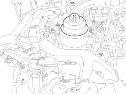 3. Wait for 5 minutes after loosening the oil filter cap to drain well the oil in the oil filter.
