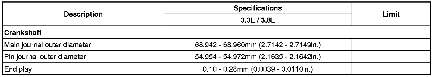 Main journal diameter 68.942 - 68.960 mm (2.7142 - 2.7149 in.)