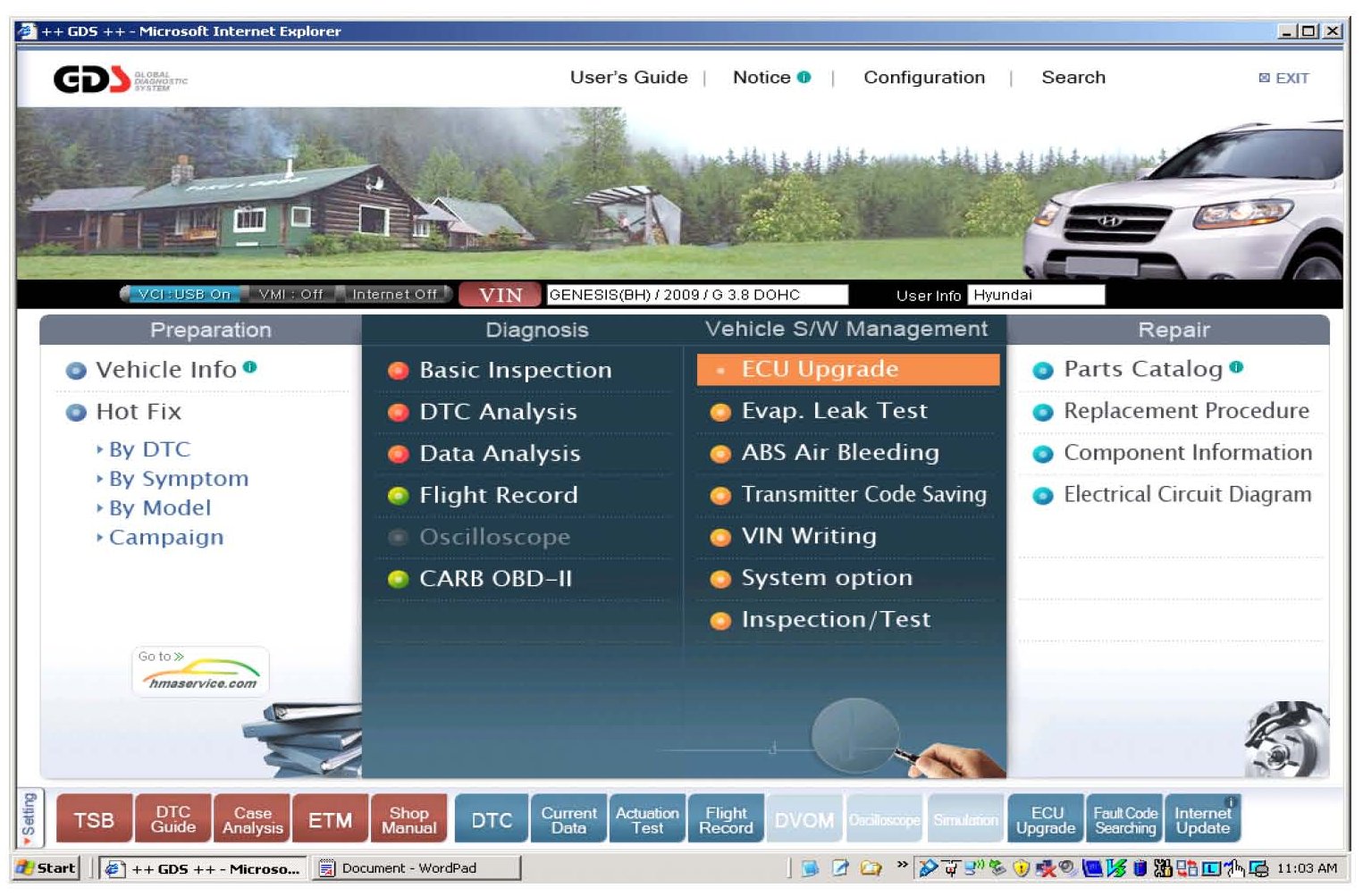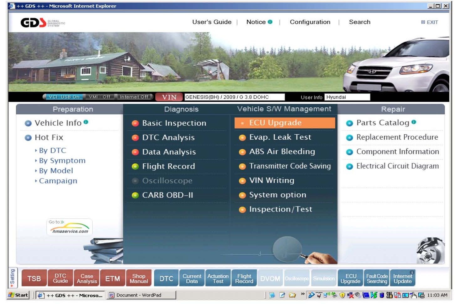 2. At the GDS main screen, select ECU Upgrade.