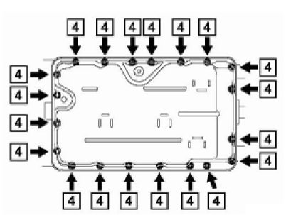 1. Remove the drain plug and the gasket from the oil pan to drain ATF.