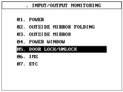 4. Select "Input/output monitoring", if you will check current data of power door lock system. It provides input/output status of DDM/ADM.