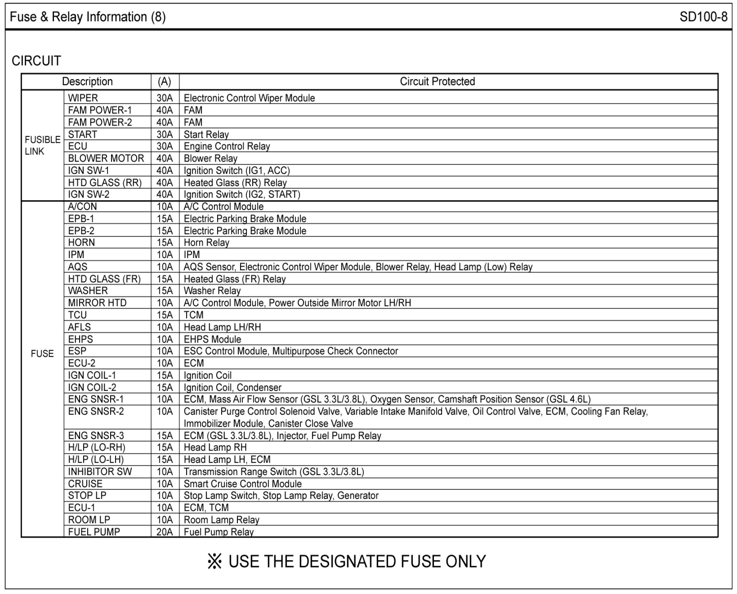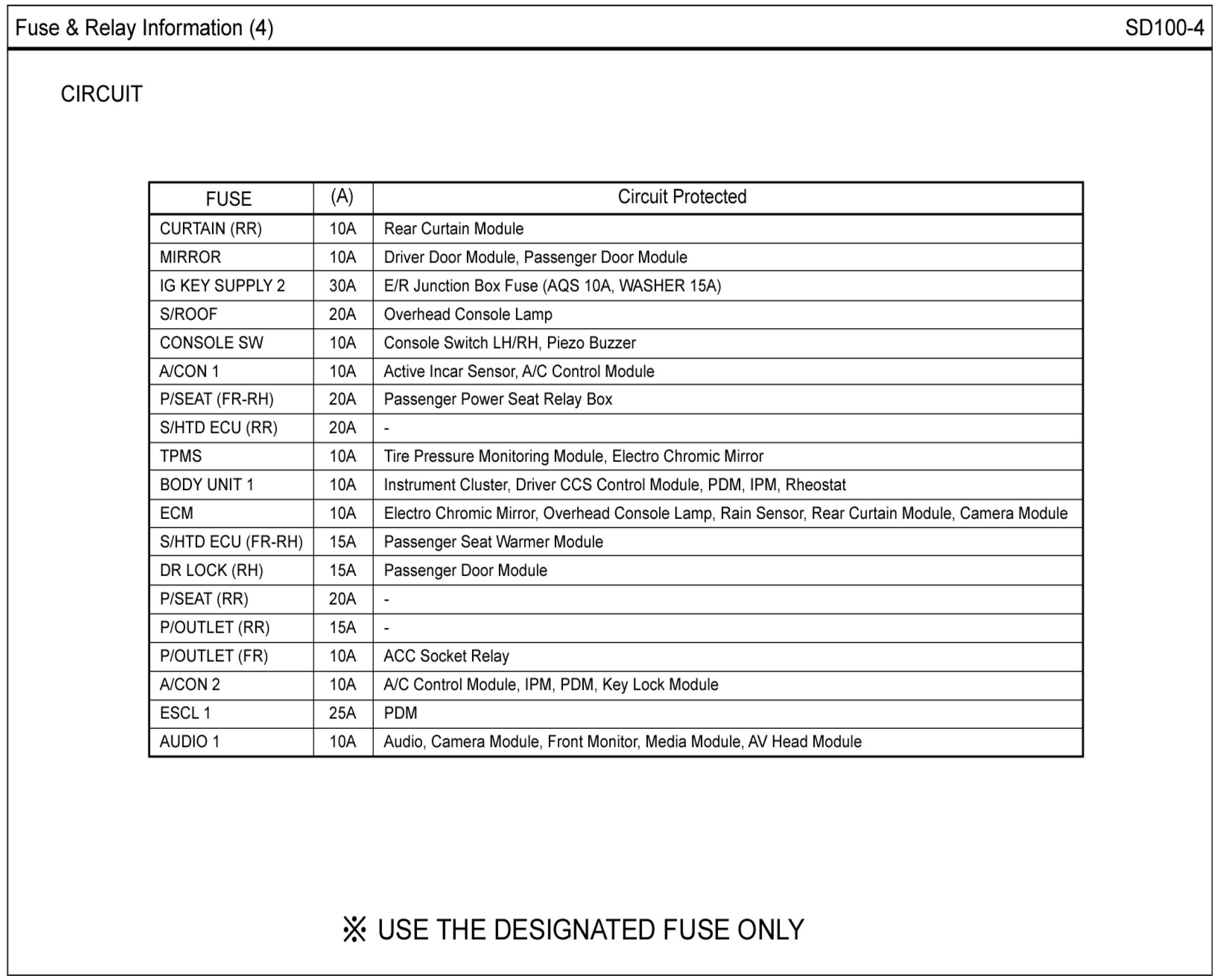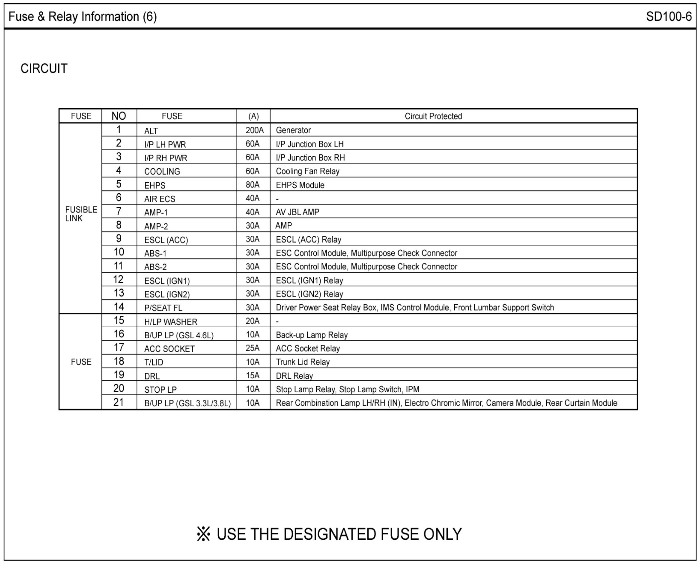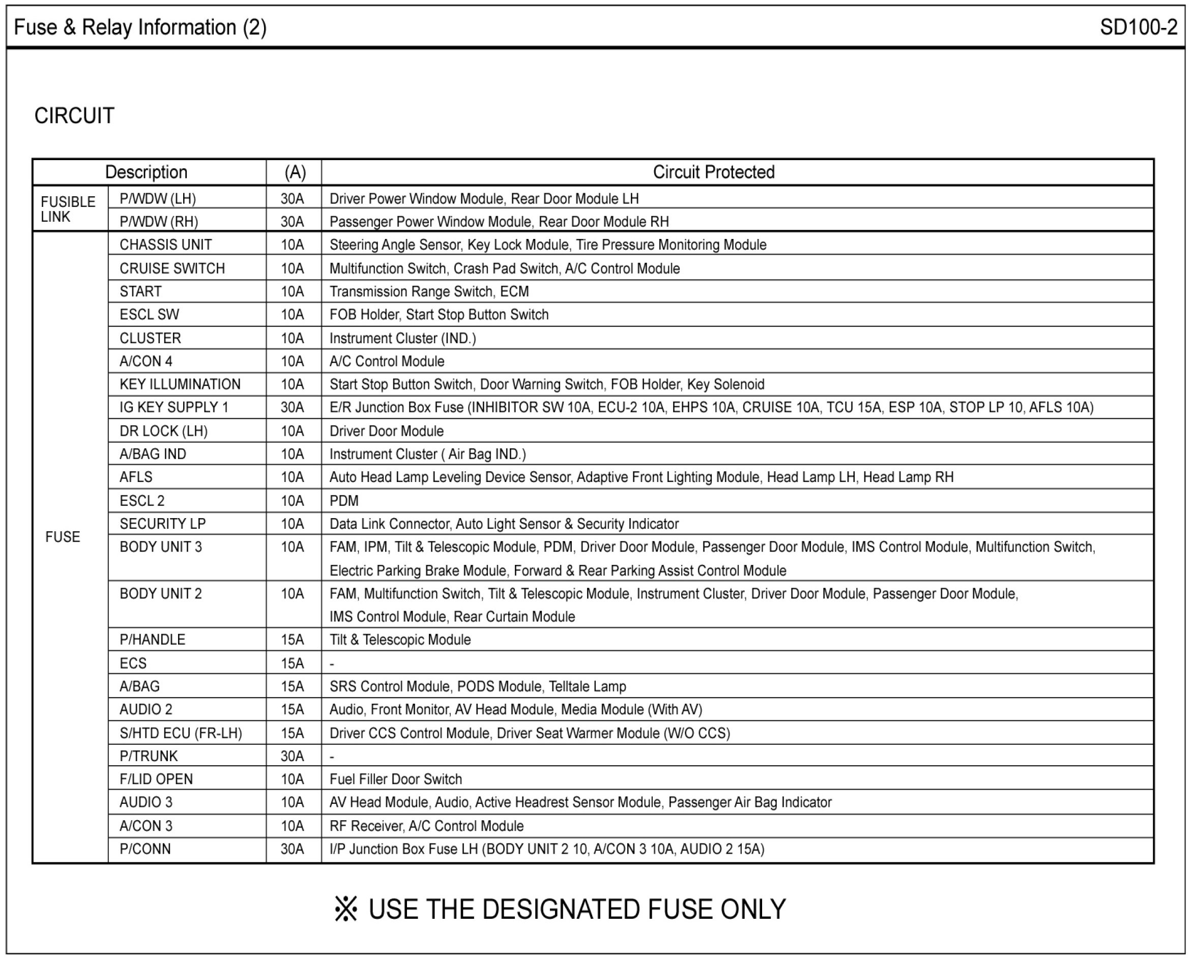 Fuse & Relay Box Layout Circuit Details: