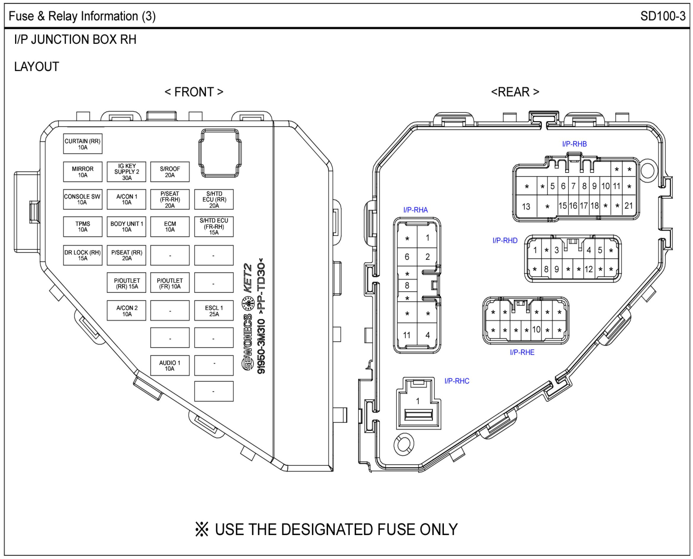 I/P Junction Box RH Layout Circuit Details: