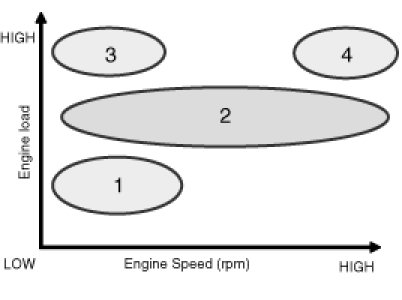 Continuous Variable Valve Timing (CVVT) system advances or retards the valve timing of the intake and exhaust valve in accordance with the ECM control signal which is calculated by the engine speed and load.