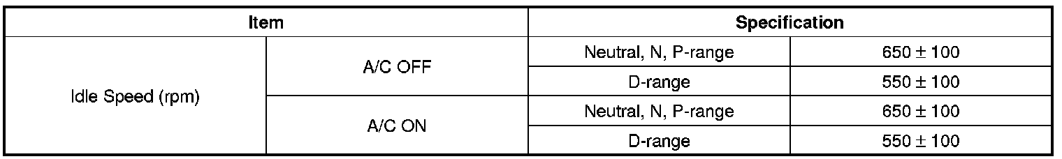 Idle Speed: Specifications
