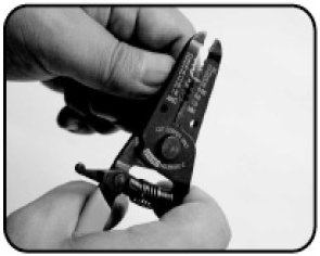 2. Choose the correct clamping slot for the wire and strip off the wire coat.