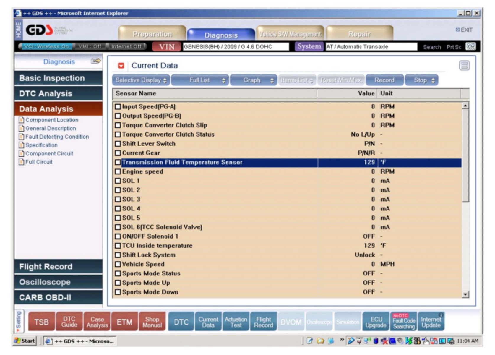 1. Attach a GDS and select Genesis V8 or Genesis Coupe V6 and "A/T" menu.