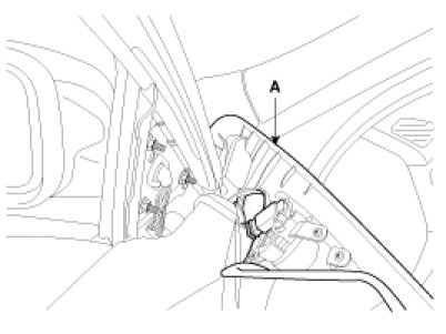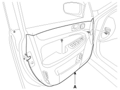 3. Remove the door trim garnish (A) after removing the screws inside the door trim.