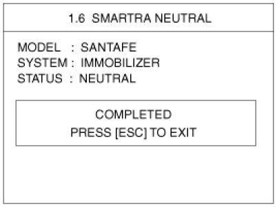 This function is for neutralizing the PCM(ECM) and Key. Ex) when lost key, Neutralize the PCM(ECM) then teach keys. can be set to the "neutral" status by a scanner.If wrong vehicle specific data have been sent to SMATRA three times continuously or intermittently, the SMATRA will reject the request to enter neutral mode for one hour. Disconnecting the battery or other manipulation cannot reduce this time. After connecting the battery the timer starts again for one hour.