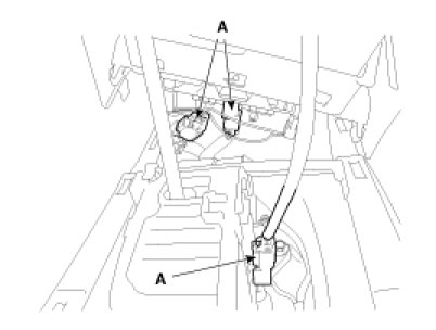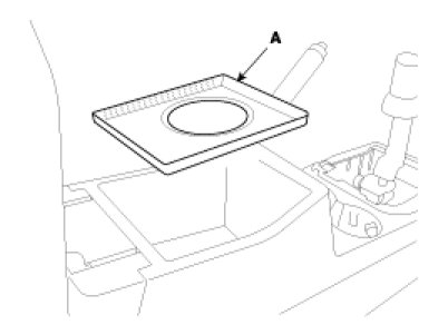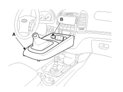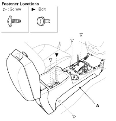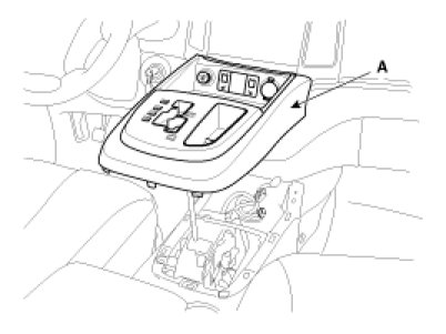 7. After loosening the console mounting bolts and screws, then remove the floor console assembly (A).