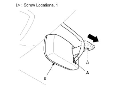 1. Push the inside rear view mirror base (A) down to remove to inside rear view mirror assembly (B).