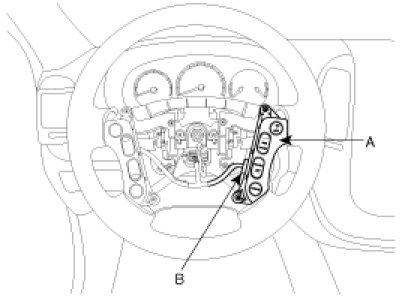 3. Disconnect the cruise control switch connector(B) and then remove the cruise control switch(A) with two screws.