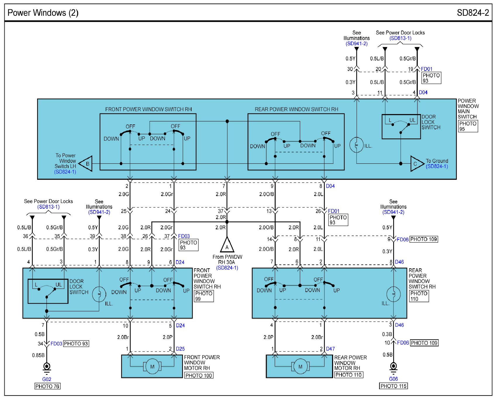 Locations: Location photographs (references to PHOTOS) referred to within these diagrams can be found via the photo number at the vehicle level under Locations by Photo Number. Component Locations