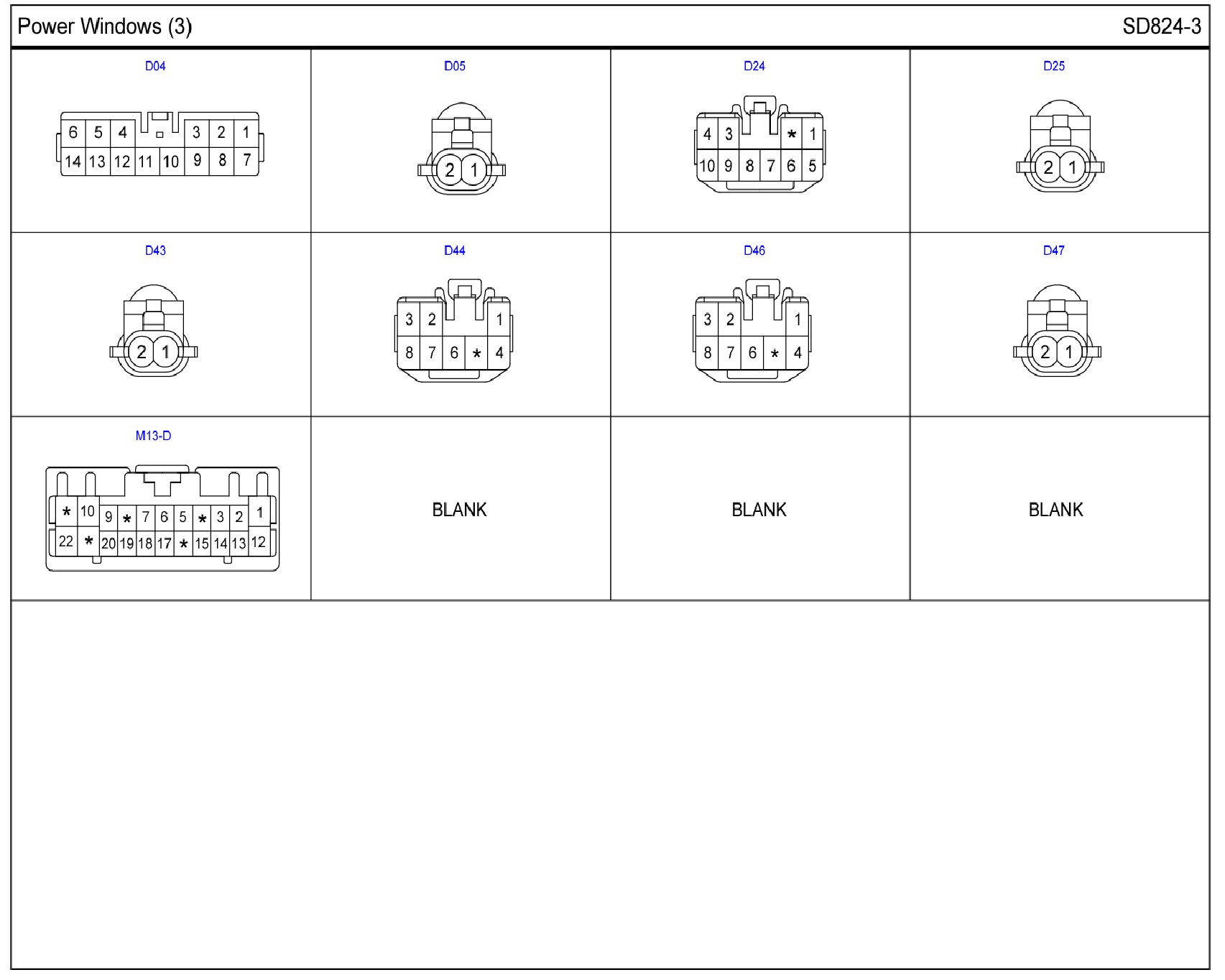 Power Windows Connector Pin Outs: