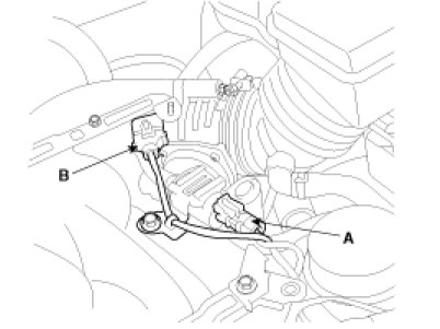 (13) Connect the ETC connector (A) and knock sensor connector (B).