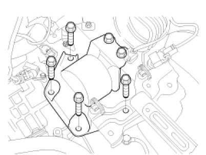 33. Install the transaxle mounting bracket bolts.