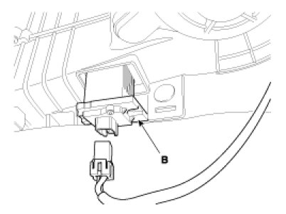 2. Disconnect the power mosfet connector (A) at the connecting part between heater and blower unit.