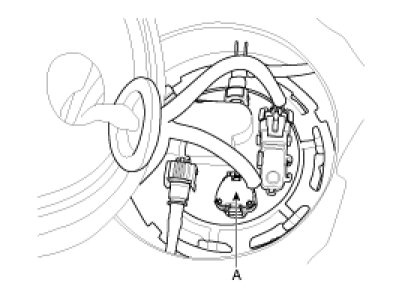 4. Disconnect the sub fuel sender connector (A) and the vacuum tube quick-connector (B)