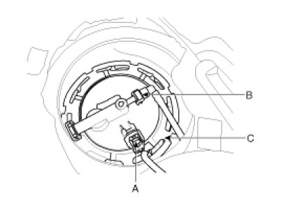 5. Unfasten the sub fuel sender plate cover (C) and disconnect the suction tube at the bottom of the fuel pump.