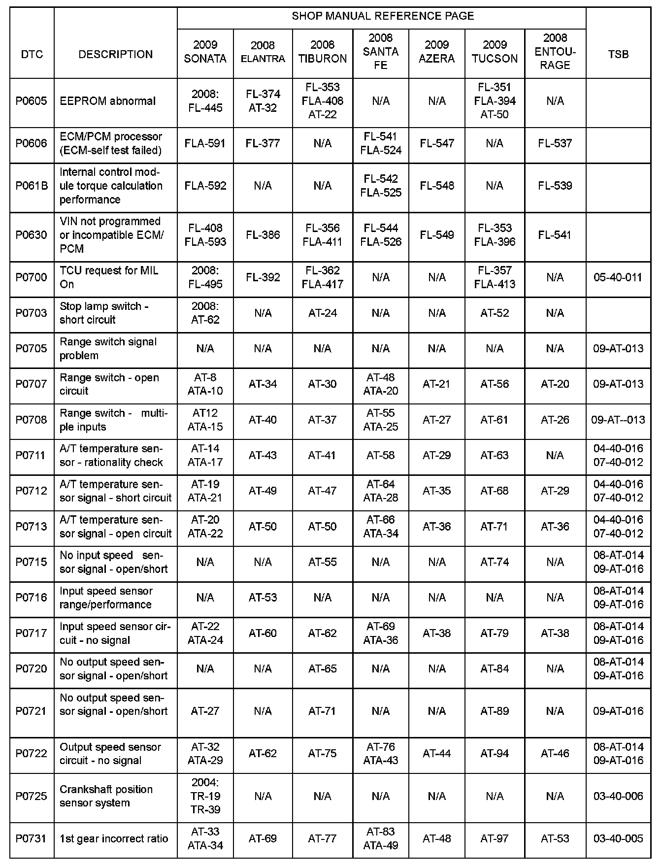 This TSB supersedes TSB 08-AT-001 to provide 2009 model information.