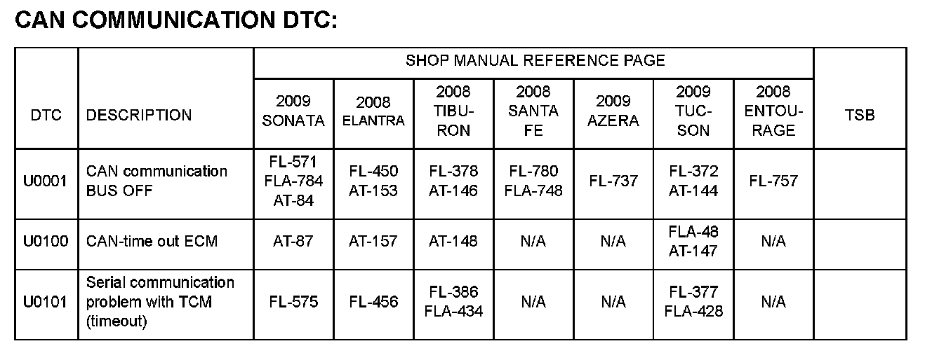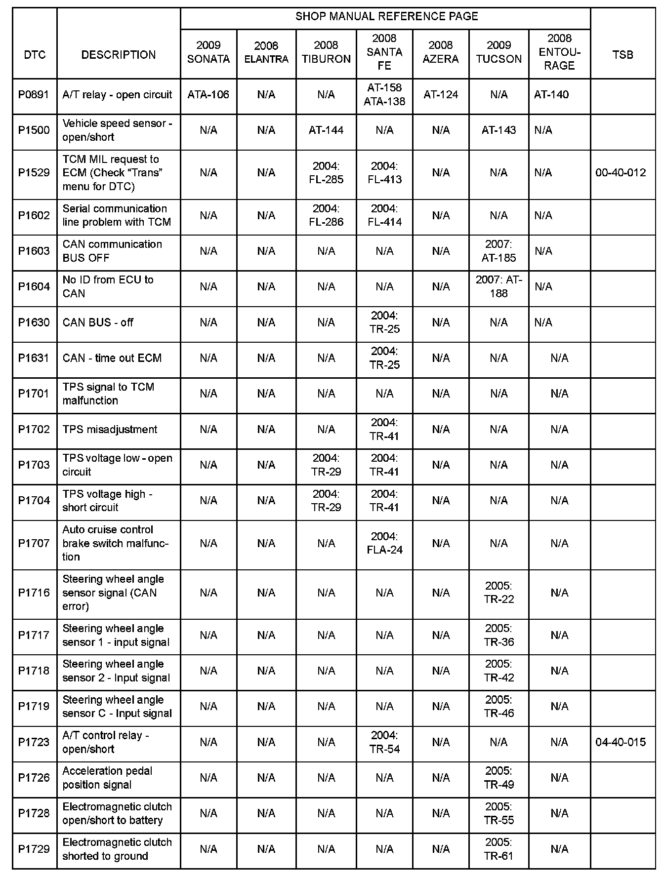 AUTOMATIC TRANSAXLE DIAGNOSTIC TROUBLE CODES LIST
