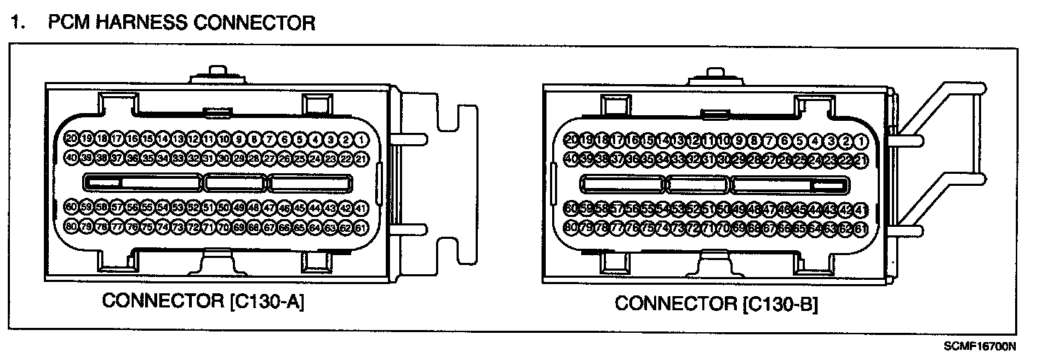 POWERTRAIN CONTROL MODULE (PCM)PCM HARNESS CONNECTORPCM Harness Connector: