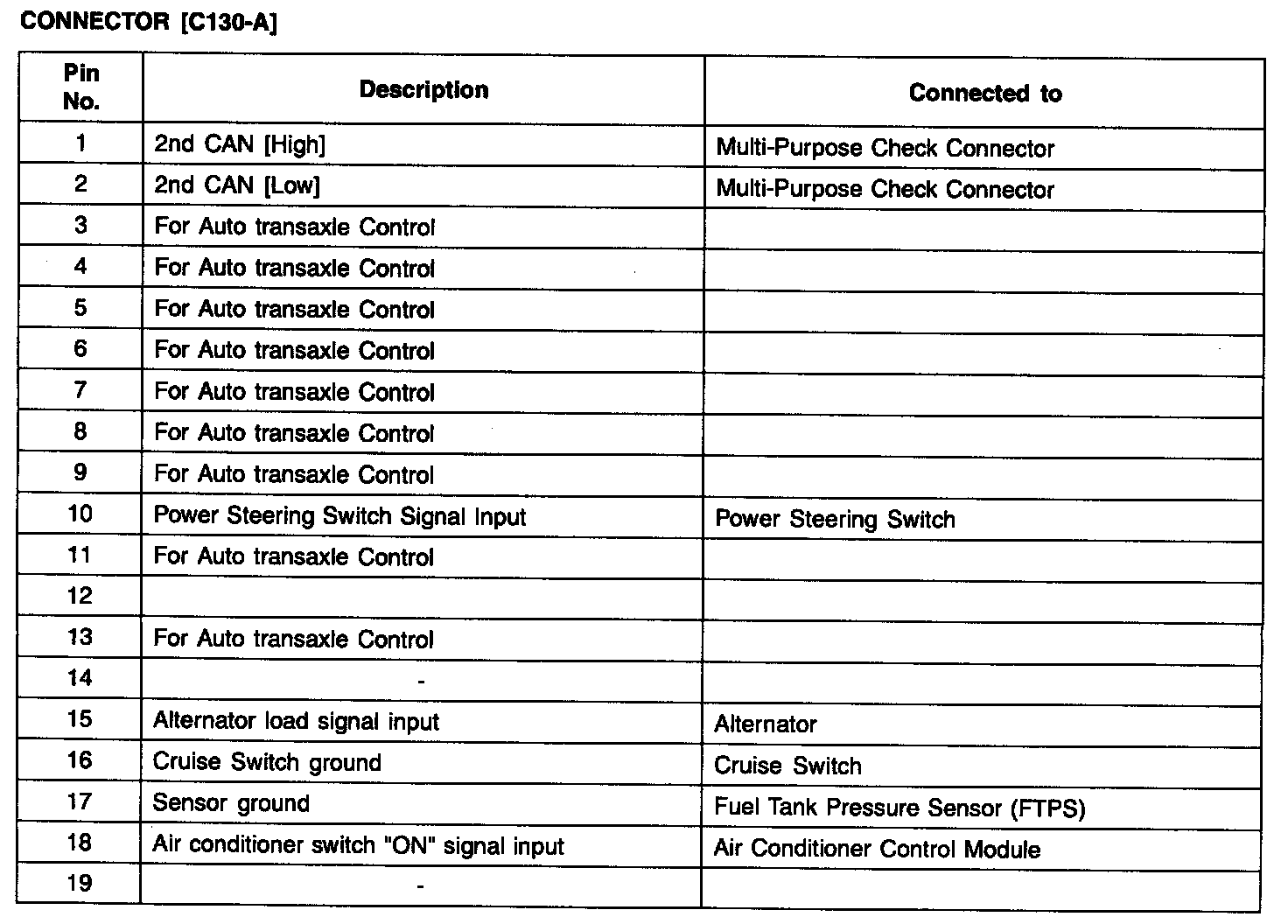 PCM TERMINAL INPUT/OUTPUT SIGNALPCM Terminal Input/Output Signal - (C130-A) Part 1:
