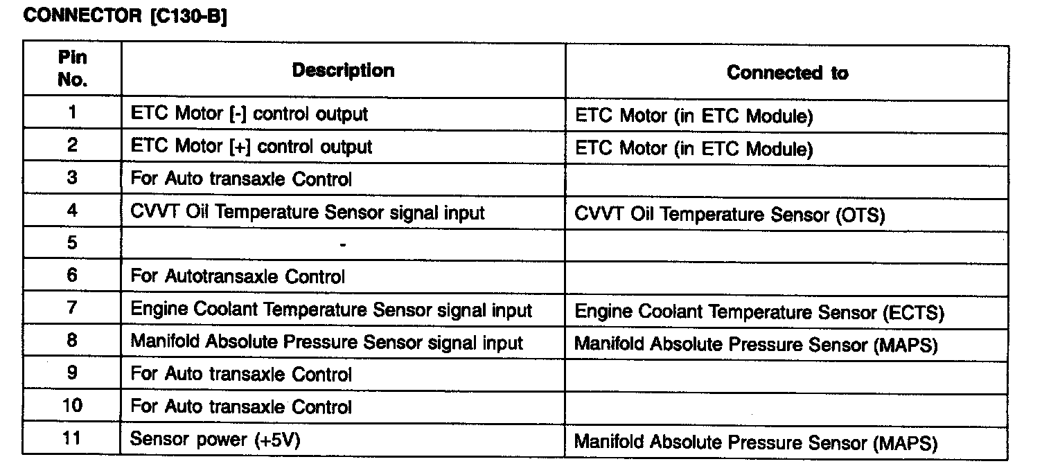 PCM TERMINAL FUNCTIONPCM Terminal Function - (C130-A) Part 1: