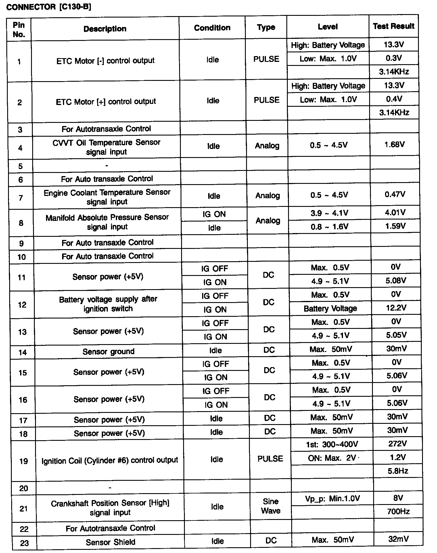 PCM Terminal Input/Output Signal - (C130-B) Part 1: