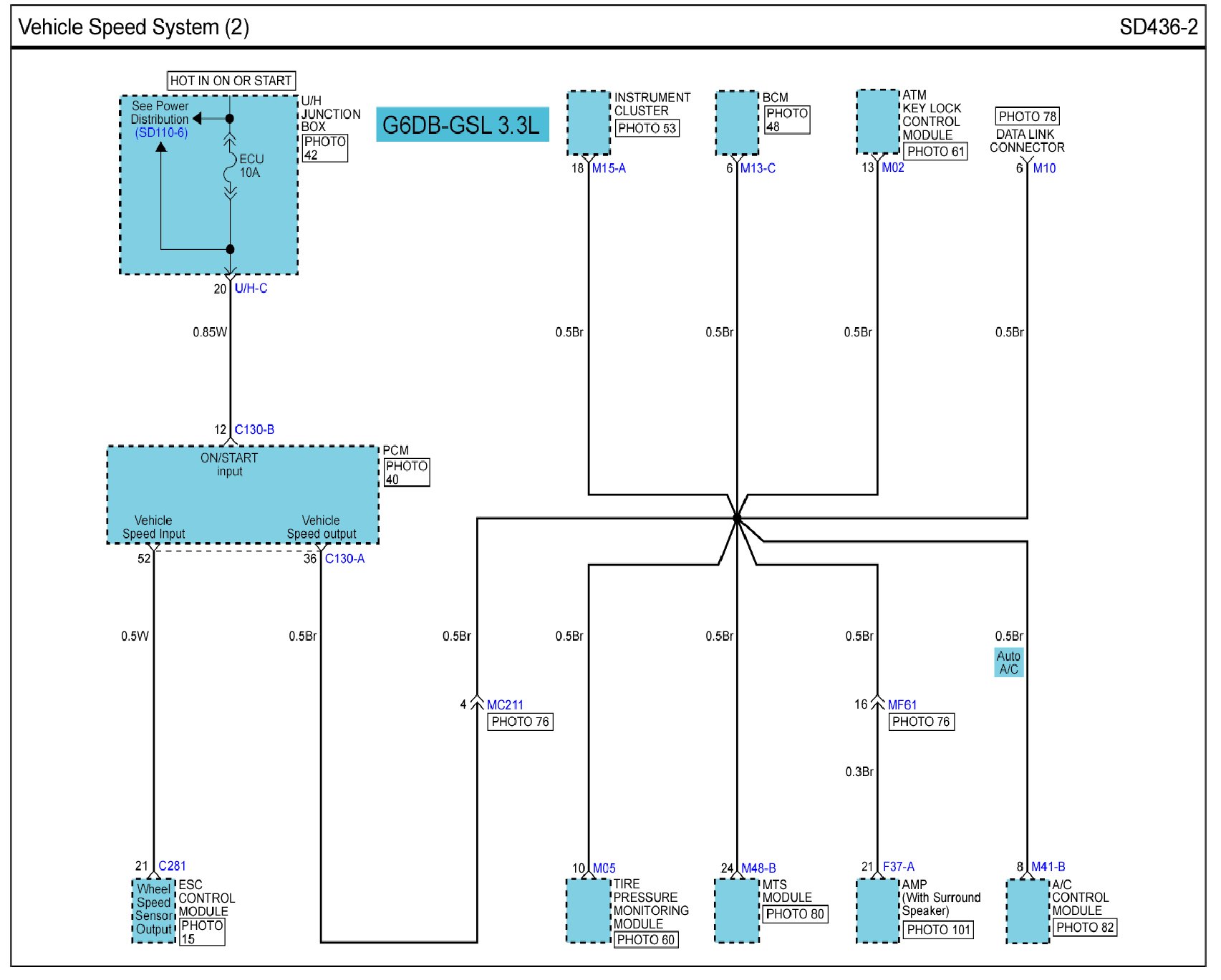 Locations: Location photographs (references to PHOTOS) referred to within these diagrams can be found via the photo number at the vehicle level under Locations by Photo Number. Component Locations