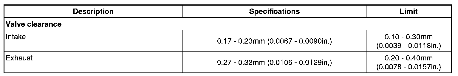 Valve Clearance: Specifications