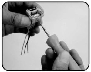 2. Insert each wire into the opposite ends of the inline solder and crimp using wire stripper.