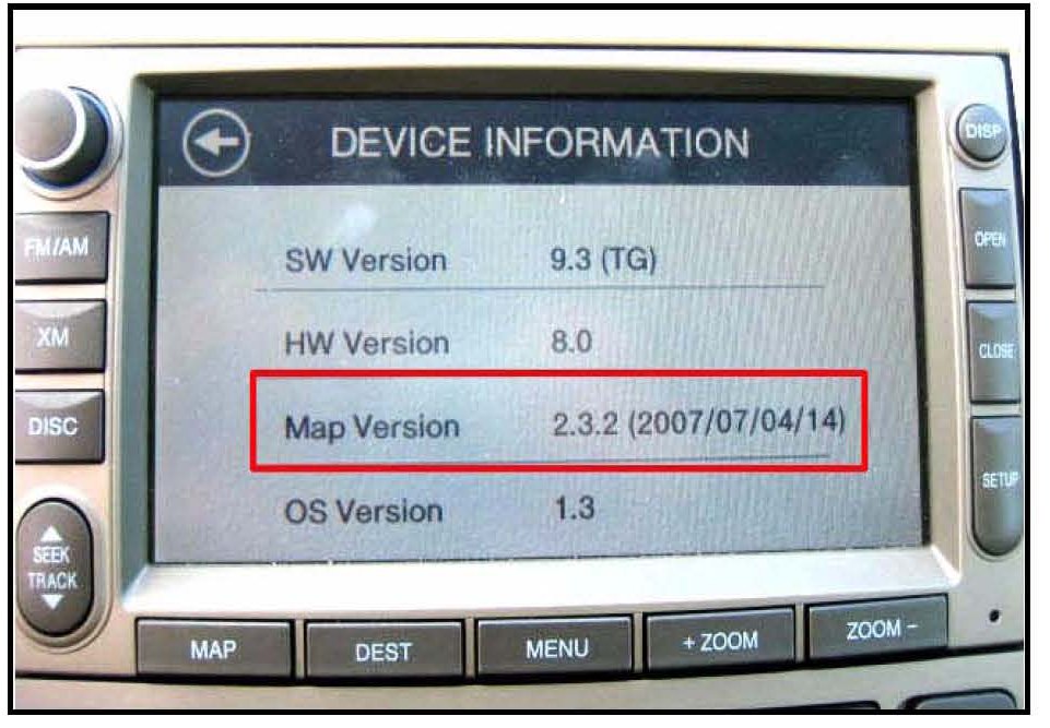 4. Check the Map Version on the screen.