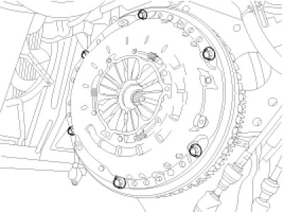 2. Remove the clutch cover bolts. Not to be bent or twisted, loosen them in diagonal directions.