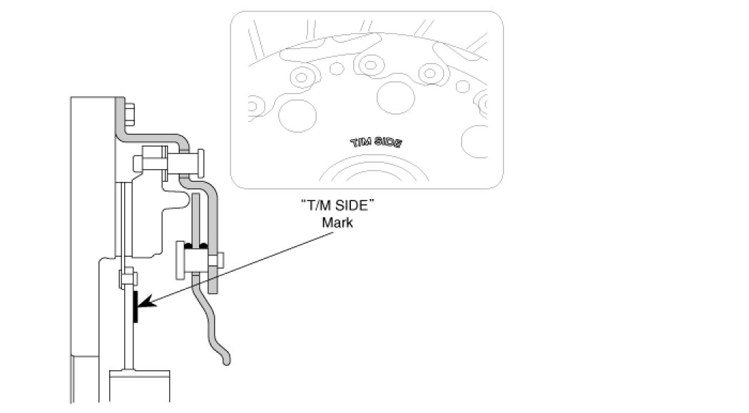 - The 'T/M SIDE' marked surface should face the transaxle.