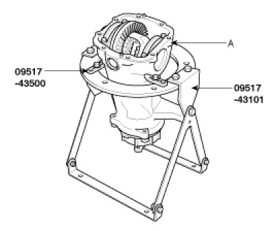 Install the differential carrier assembly(A) with the special tools(09517-43101 & 09517-43500).Then carry out the following inspection.