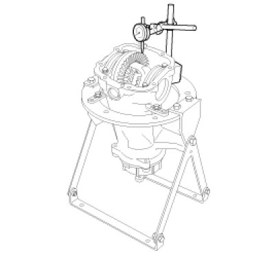 (1) Fix the side gear with a wedge so it cannot move and measure the differential gear backlash with a dial indicator on the pinion gear.