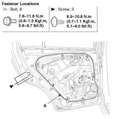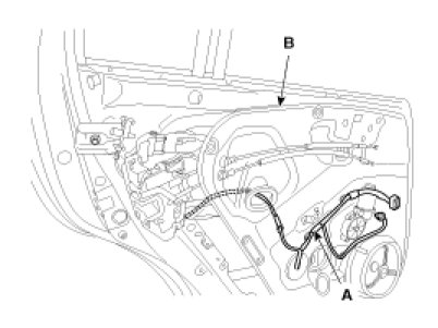 4. Disconnect the door module wiring harness (A), then remove the module assembly (B).