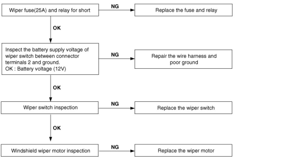 Wiper low and wiper high do not work.