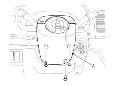2. Remove the steering column upper and lower shrouds (A) after removing 3 screws.