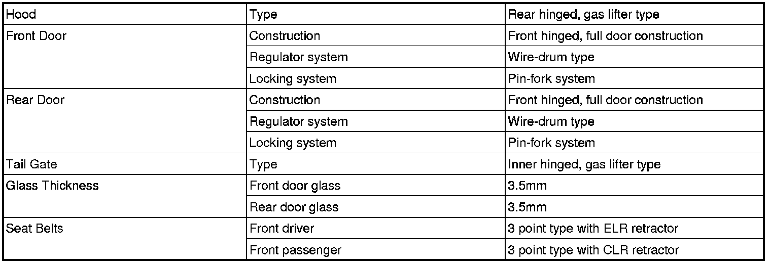 Body and Frame: Specifications