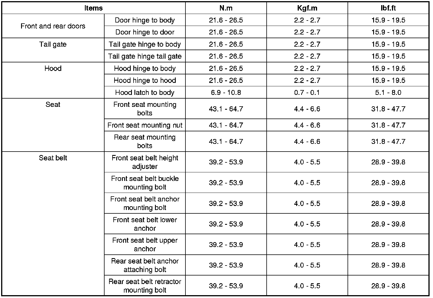 Tightening Torque