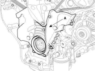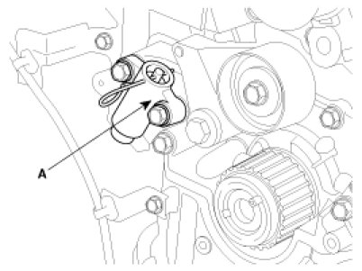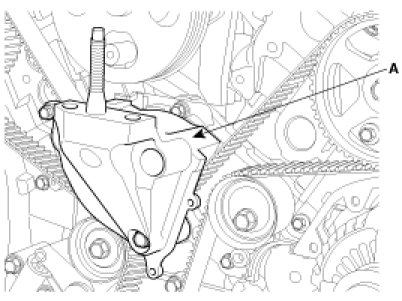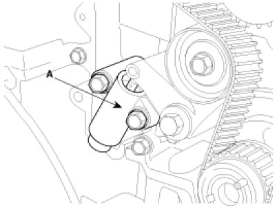 (2) Install the auto tensioner(A) to the front case with the set-pin inserted.