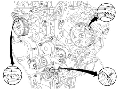 4. Ensure the timing marks on the camshaft and the crankshaft sprockets.