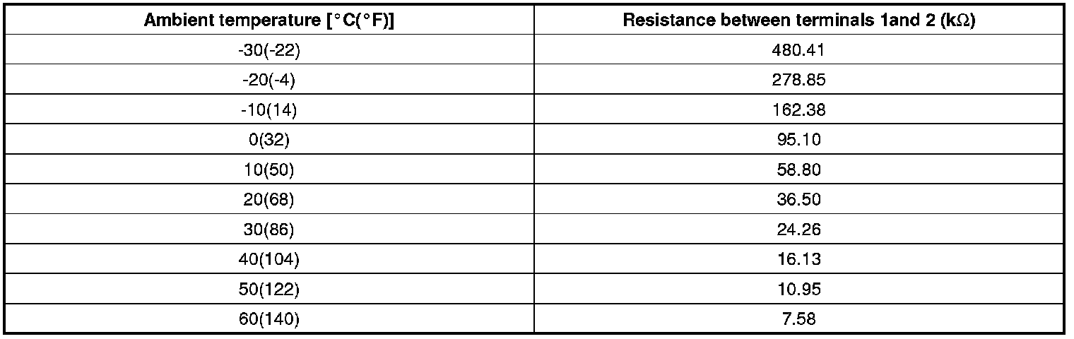 3. Check the resistance of ambient temperature sensor between terminals 1 and 2 whether it is changed by changing of the ambient temperature.