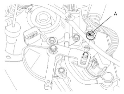 7. Remove the shift cable mounting nut(A).