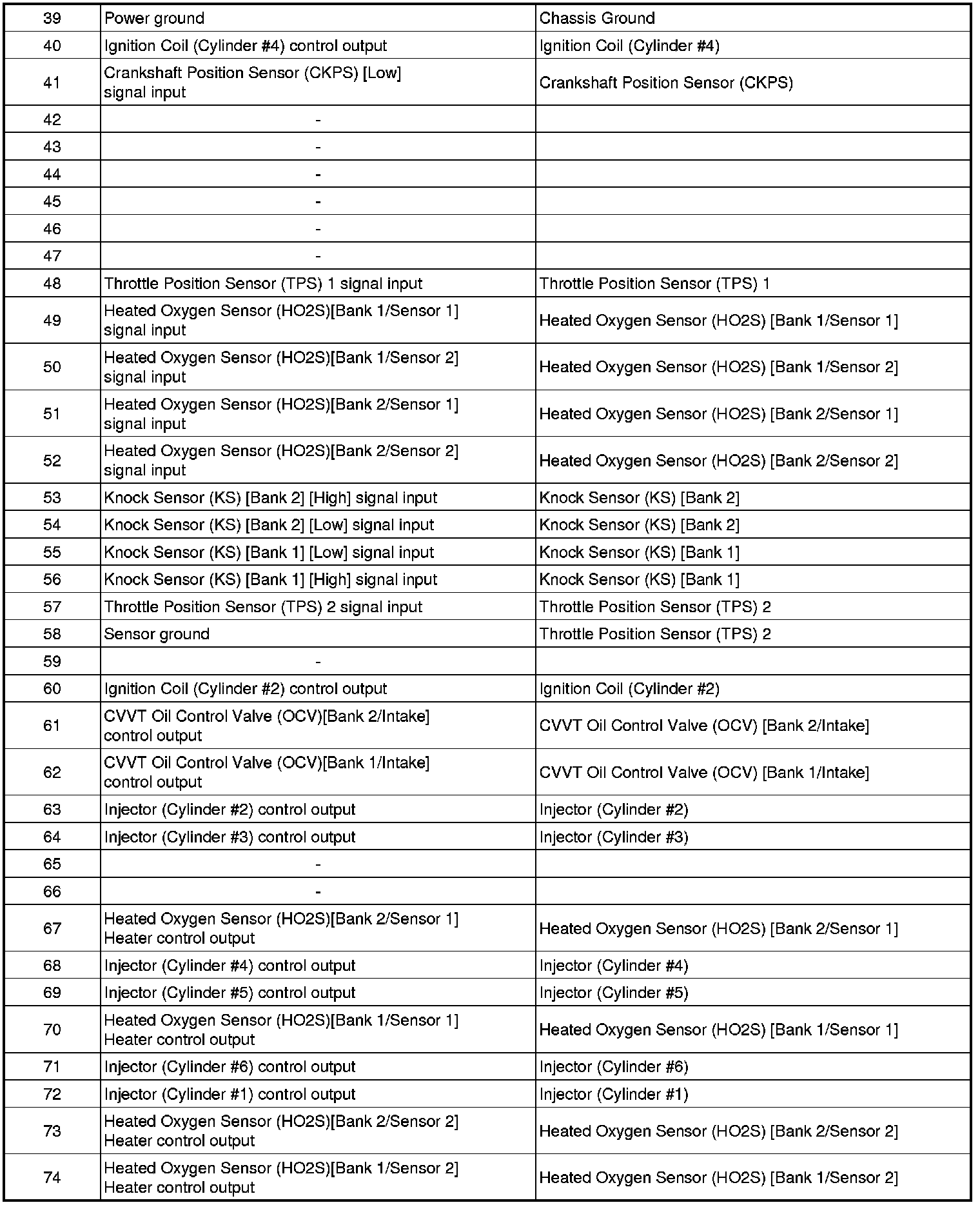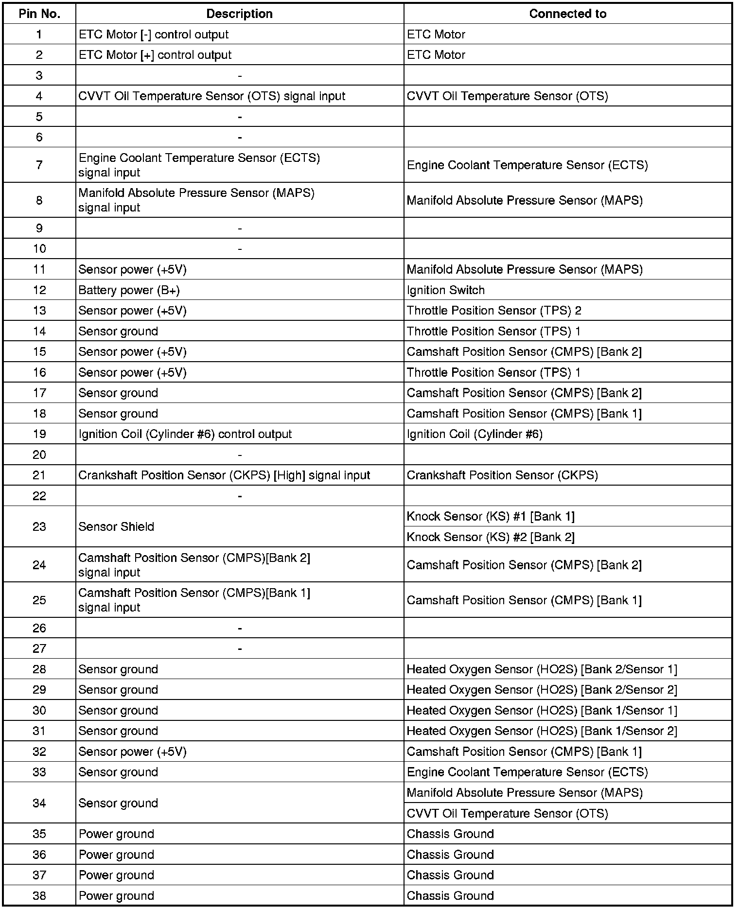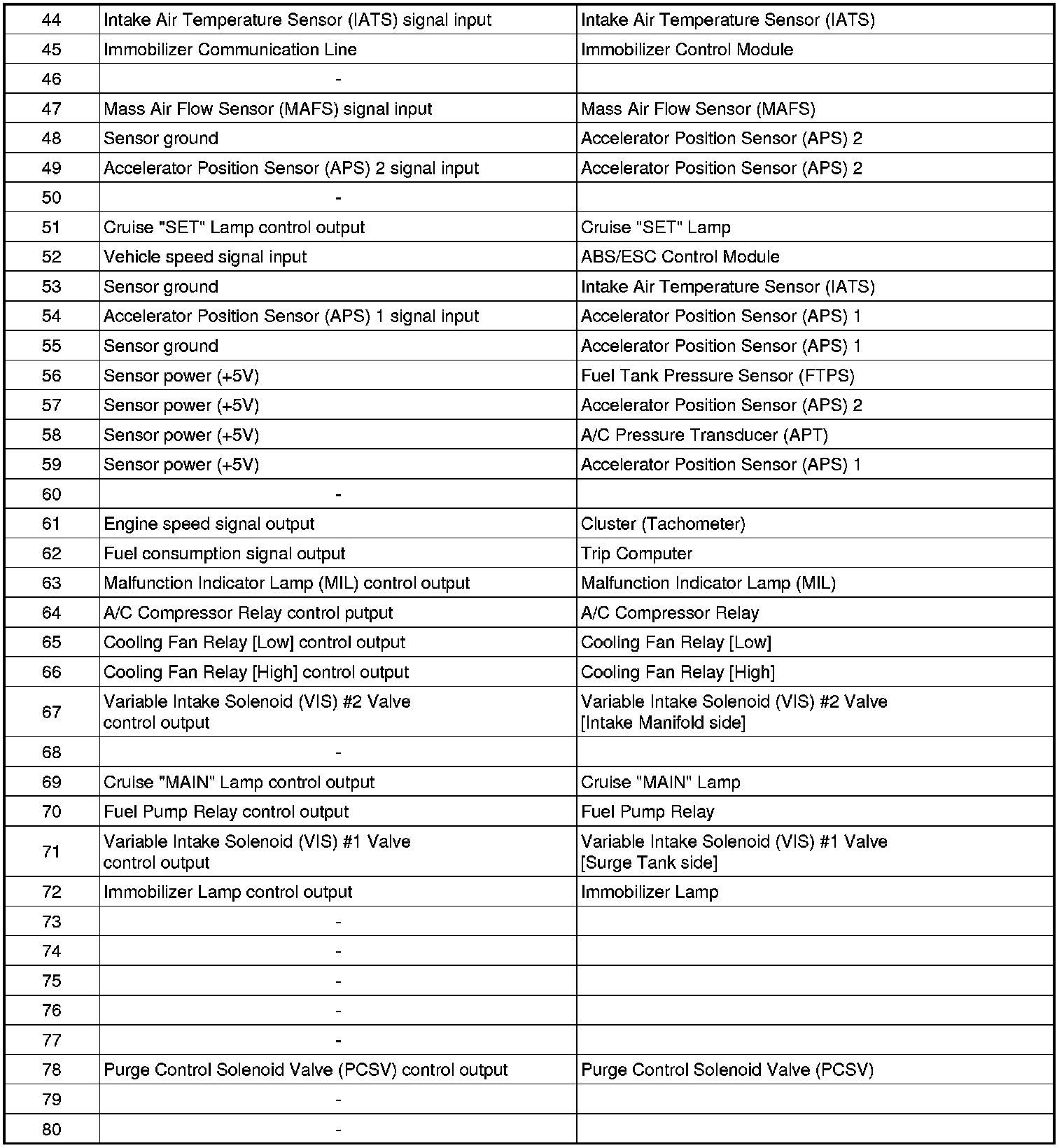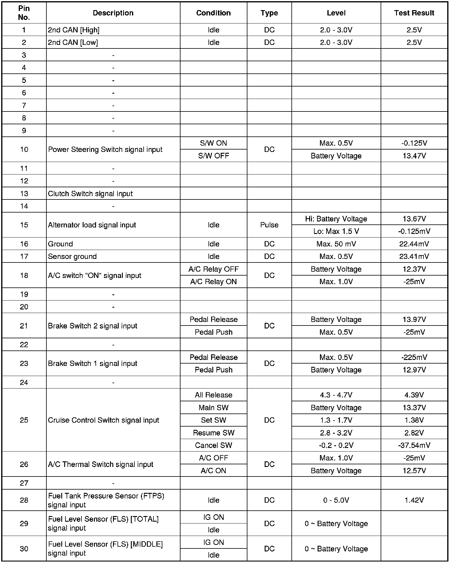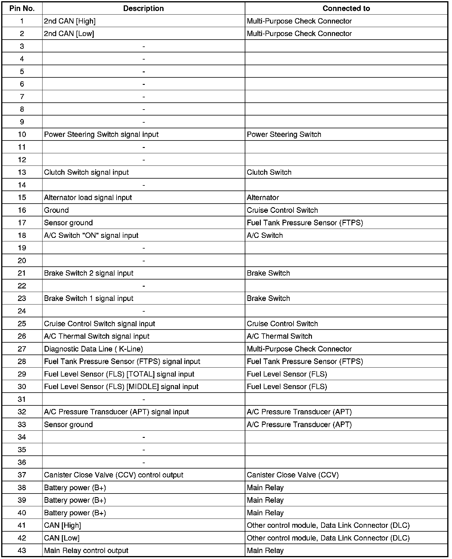 ECM Terminal Input/Output Signal