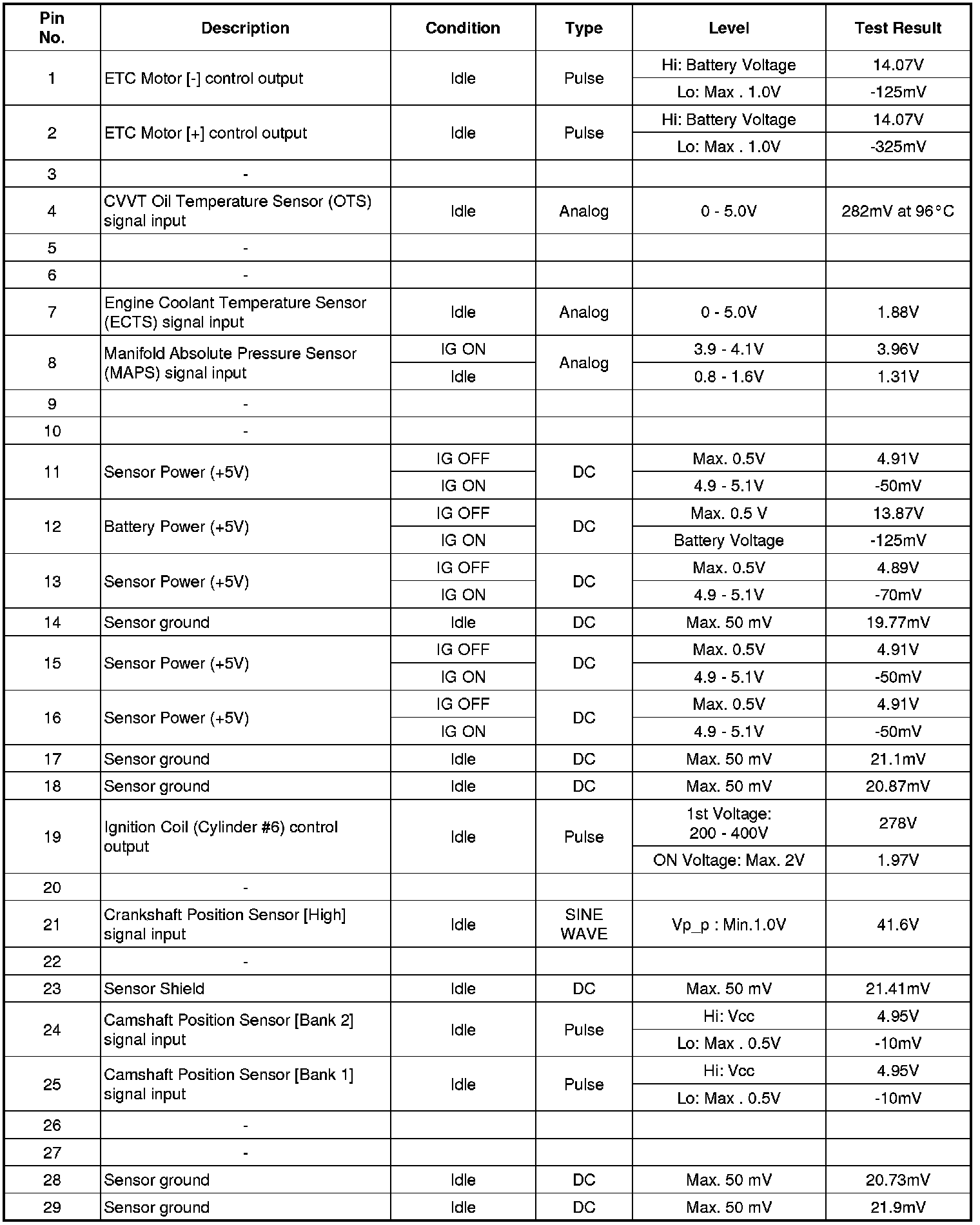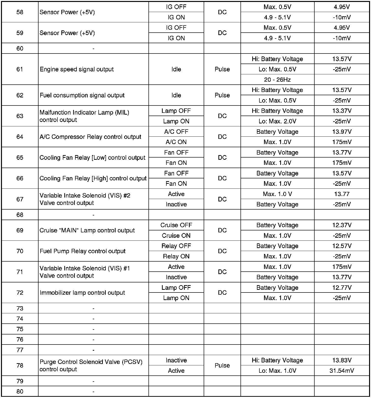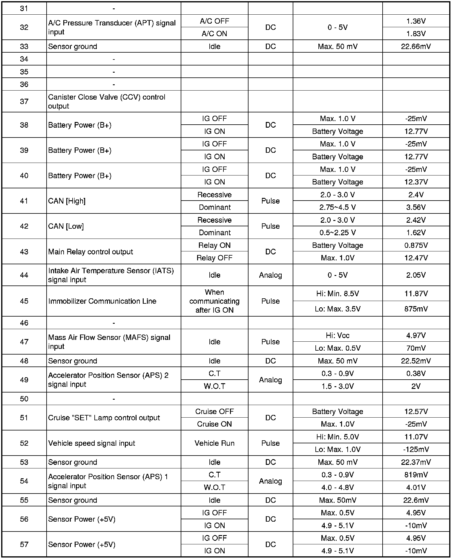 ECM Terminal And Input/Output signal